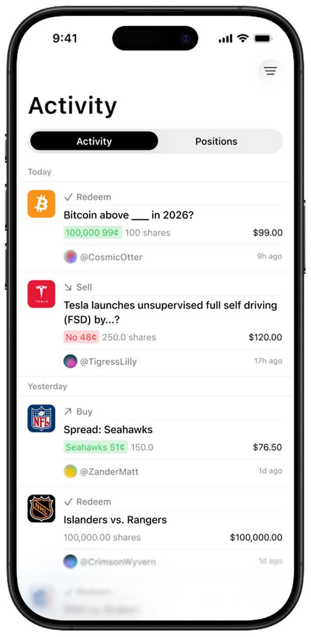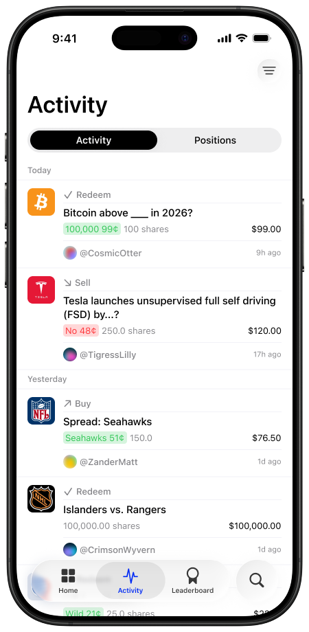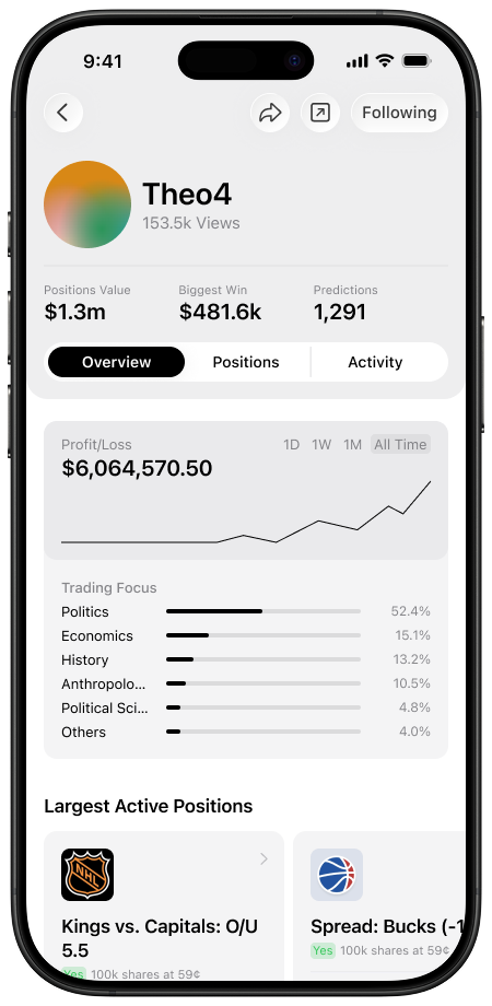 See trades as they happen. Review open positions, recent changes, and exits across markets to understand how traders think over time.