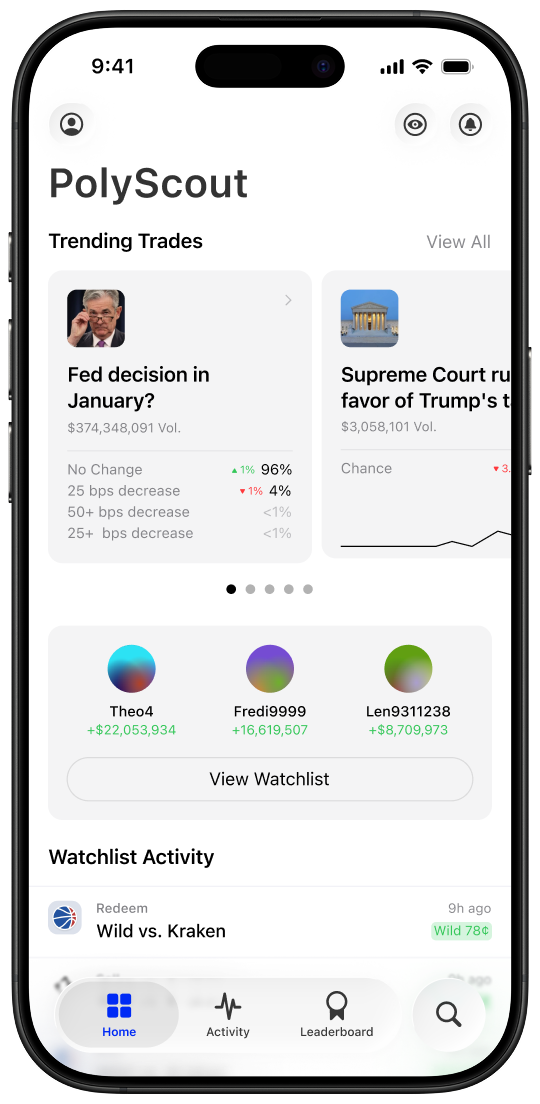 Follow top Polymarket traders based on real performance. Build a watchlist around traders you trust and want to learn from.