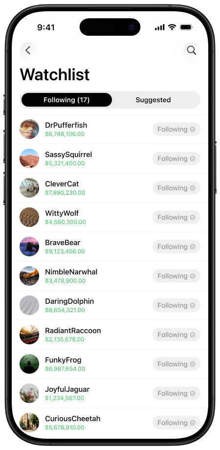 Explore top traders, watch their trades, get activity alerts.